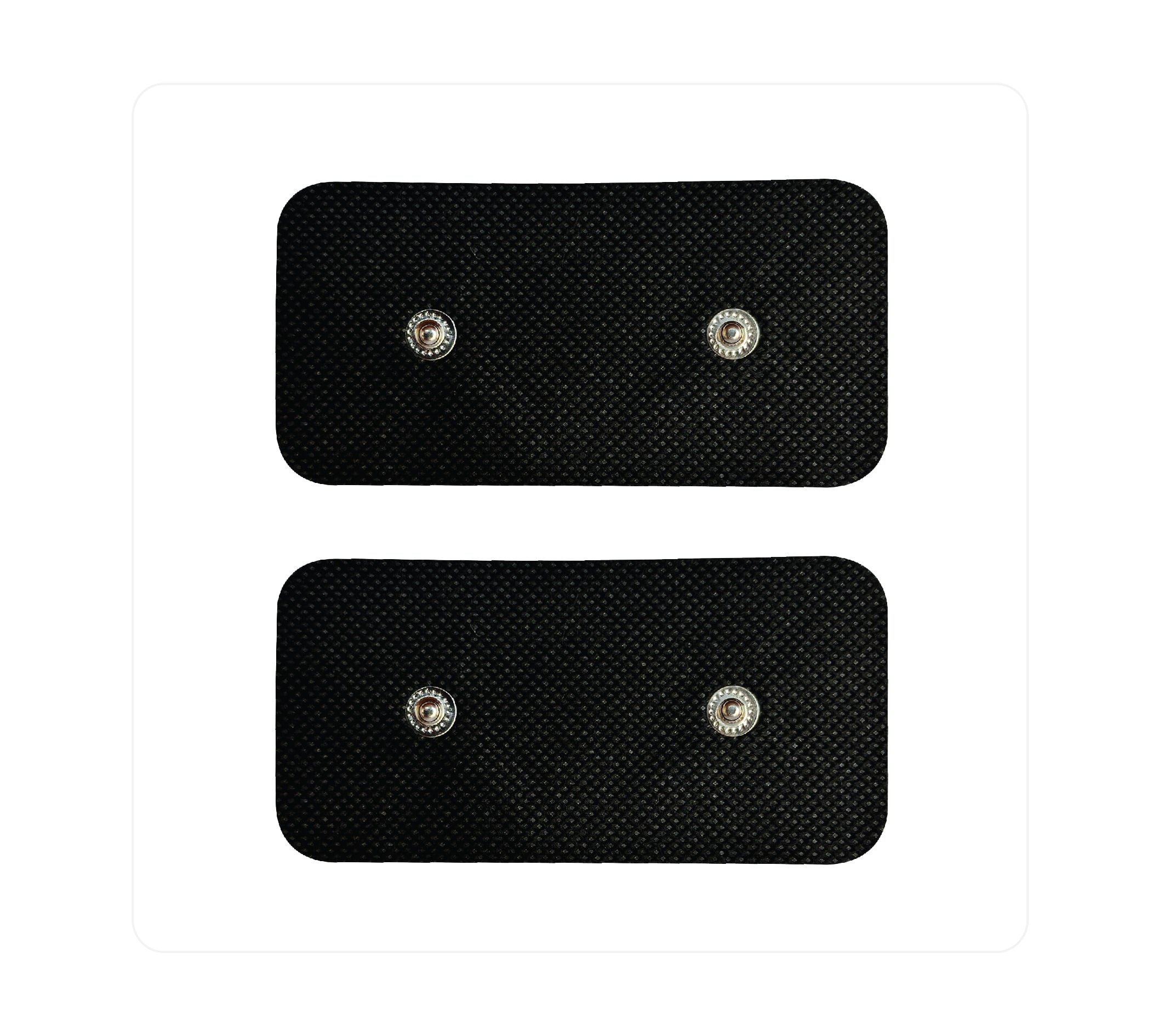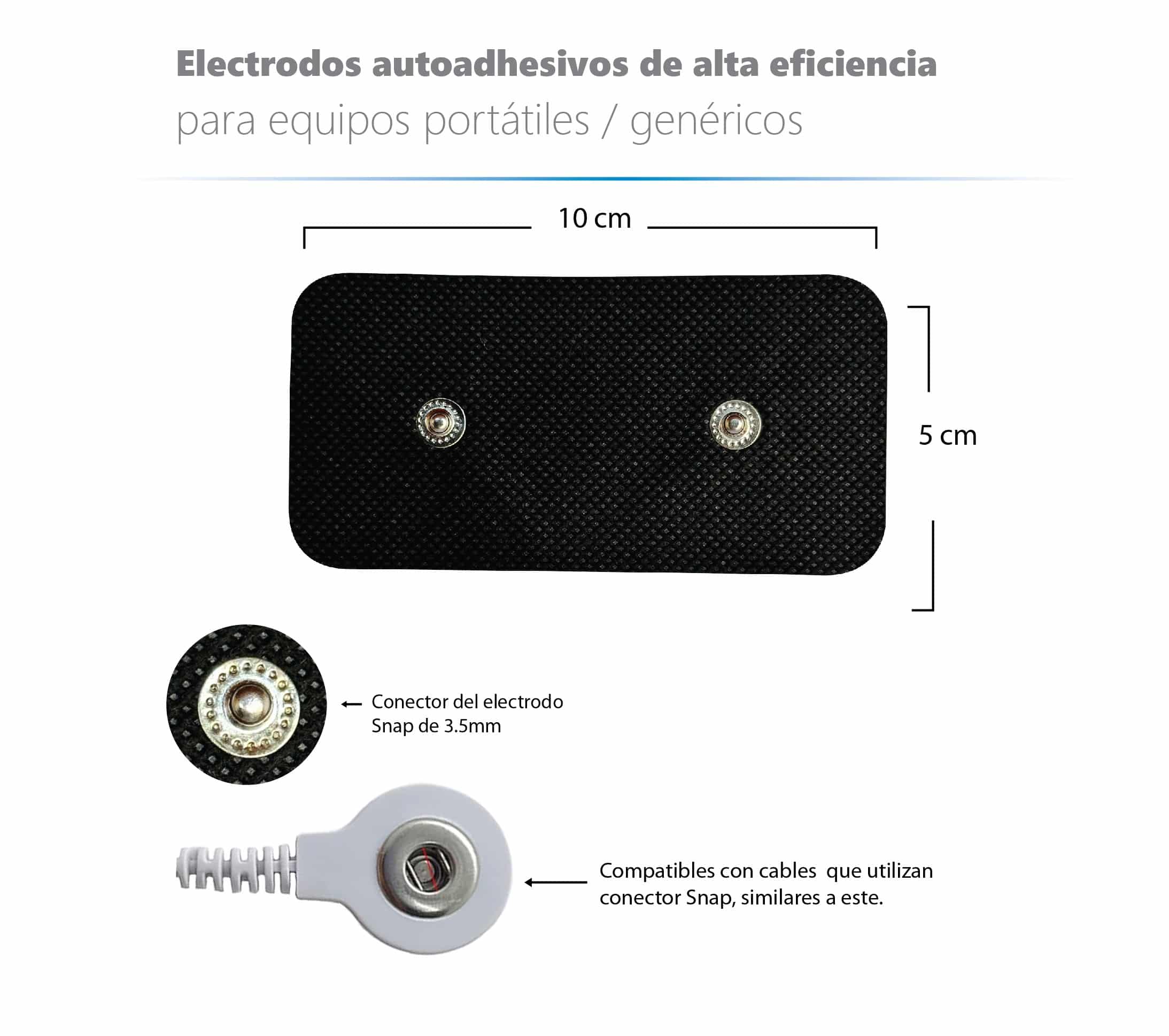 - 2 electrodos autoadhesivos DOBLE SNAP de alta eficiencia, 10 x 5 cm, para electroestimuladores compatibles / genéricos